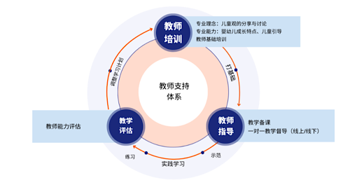 “优秀且专业的老师影响家长,家长深度参与并不断成长,在督导赋能体系下成长为新的‘妈妈老师’,而后不断影响新的家长。”
