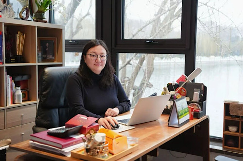 从宋妍位于后海的办公室望出去,后海水面静谧无波,但其下却蕴含着整个春天的涌动与生机。窗内,着红色休闲衣的宋妍,长发自然垂落,正端坐于电脑前,专注地处理着事务。窗台上,两盆红色花卉迎雪盛放,以最热烈的姿态,诉说着生命本真的坚韧。
