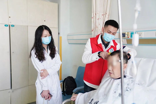 纪伟伟:感动的事情有很多,比如在一次临床公益理发项目中,一位70多岁的老人,心态特别好,一直开朗地和我们聊肿瘤治疗没什么可怕的,病房里也总充斥他爽朗的笑声,但是当他坐在理发椅上时,却轻轻地说了句“这个活动真好啊”,流下了眼泪……当时站在老人对面的我内心有酸楚、有怜爱、有敬佩,更有着一份坚定。