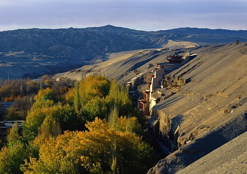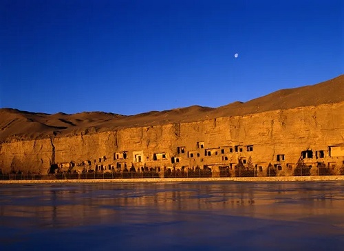 敦煌位于甘肃省河西走廊的西端,历史上曾作为中原通往西域和欧洲的唯一通道,是中国、印度、希腊、伊斯兰四大文明的交汇地,“敦煌”两字被注释为“盛大、辉煌”之意。