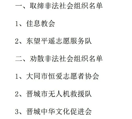 东望平遥志愿服务队、大同市恒爱志愿者协会……又一批非法社会组织名单公布