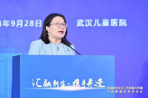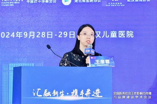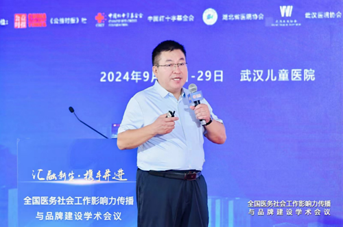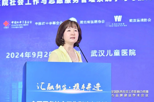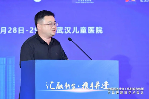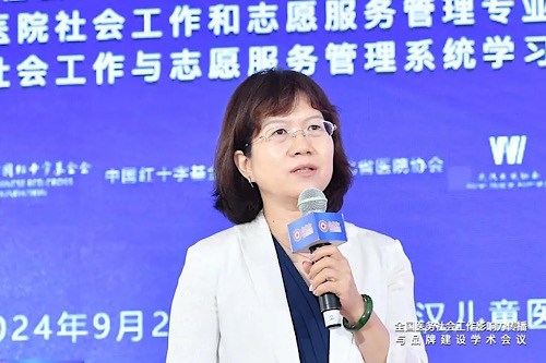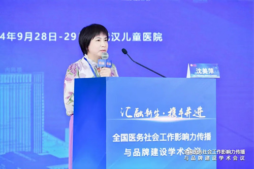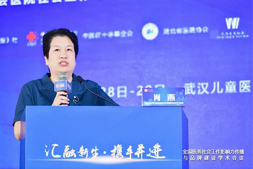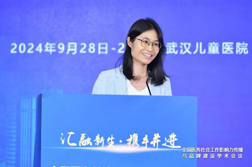 武汉医院协会医院社会工作与志愿服务管理专业委员会主任委员肖翠萍作题为《医务社工,武汉儿童医院公益人文的实践者与探索者》的演讲。她指出,目前,武汉儿童医院已经形成“专职医务社工+医务社工助理+志愿者+社工实习生+心理医生”多方联动的五位一体服务模式,以此为基础为患者提供多形式的社会心理支持服务。以“医路生花”安宁疗护、“医路同行”慢病管理、“医路前行”医护关怀等品牌建设项目和一系列公益慈善项目为抓手,着力打造湖北省医务社工示范基地,做好医院医务社会工作推进和人才队伍建设发展,为患儿送去更完善的关怀和跟踪服务,提供更高质量和更具温情的医疗过程,让医患关系更加紧密和谐的积极实践。