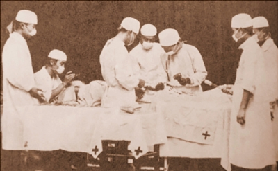 在陕甘宁边区的中国红十字会第35救护队员做手术的情景