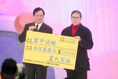 2008年2月17日,在香港无线电视TVB播出的《雪中送暖》特别节目上,霍氏家族为赈灾捐赠500万港元