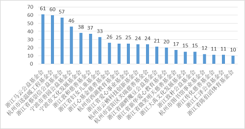 3.申请品牌商标最多的基金会是浙江马云公益基金会 ,共申请了61件商标