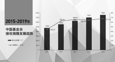 2019年,全国基金会共接收捐赠677.14亿元,比上年增长4.84%。在接收捐赠的规模上,非公募基金会正在快速增长。公募基金会数量相对较少,但募捐金额相对较多。截至2019年年末,我国共有基金会7585家,同比增长7.83%,是慈善事业的中坚力量。
