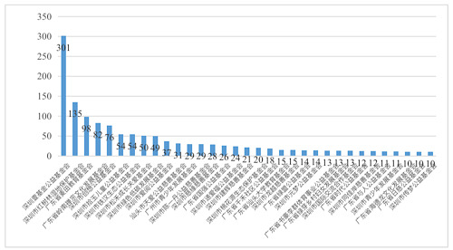 3.申请品牌商标最多的基金会是深圳壹基金公益基金会,共申请了301件商标