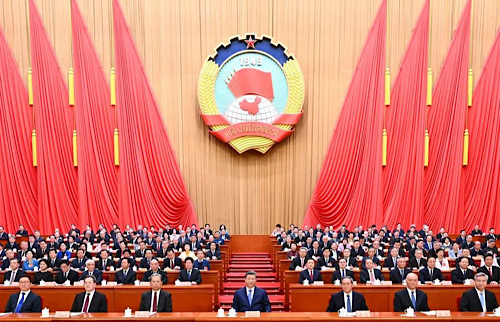 三月的北京,春启华章。人民大会堂大礼堂灯光璀璨,气氛隆重热烈。中国人民政治协商会议会徽悬挂在主席台正中,十面鲜艳的红旗分列两侧。