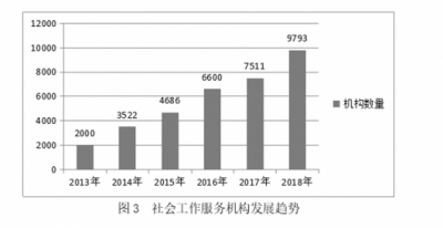 社会工作服务机构数量保持持续增长。截至2018年底,各地共成立社会工作服务机构9793家。与去年江苏、浙江、四川民办社会工作服务机构总量500余家相比,今年浙江一个省就达到了432家。
