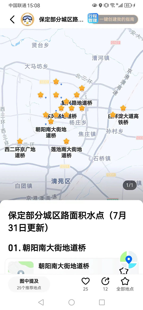 目前“积水地图”更新范围包括北京、泉州、保定等地