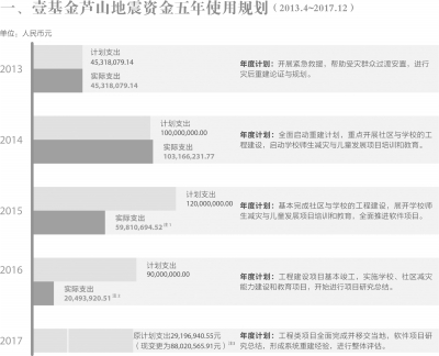 2016年4月20日即将是芦山地震灾后恢复重建的三周年,作为开展灾后恢复与重建工作的主要公益组织之一,壹基金发布了“4·20”芦山地震三周年工作报告,向广大公众汇报三年来援助芦山震后地区重建工作的主要成果和资金使用情况。截至2016年3月31日,壹基金收到芦山地震捐款约3.86亿元,累计支出资金2.29亿元,已使用资金为全部捐赠资金的59.22%,三年里,壹基金与320个/次伙伴合作,实施了49个大型项目,灾区受益人次超过40万。壹基金芦山地震救援和重建工作基本按照规划进度有序开展,“以减灾为核心,创建韧性家园”的灾后重建工作初见成效。