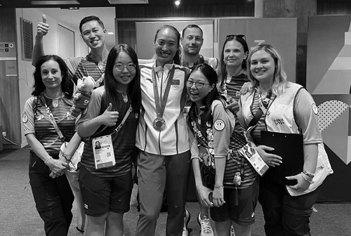 在工作中,来自中国的志愿者与来自其他国家和地区的志愿者互帮互助、互相协作,结下了深厚的友谊。在沙托鲁射击中心工作的志愿者许诺来自山东,是一名在法留学生。天气炎热加上阳光直射,许诺主动提出让团队中两名较为年长的女士负责室内工作,他自己承担起在户外服务记者采访的工作。“这里氛围很好,当某个岗位的工作任务繁重时,其他岗位的志愿者会主动过来帮忙,大家始终保持着积极心态。”许诺说。