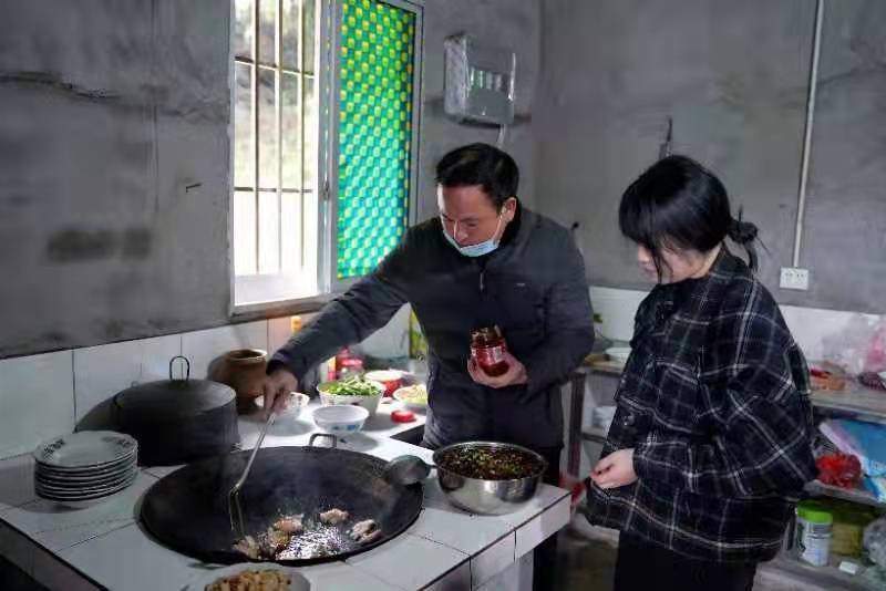 村书记为刘昌友准备团年饭。受访者供图