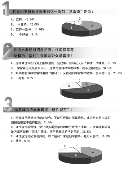 ■ 本报记者 张雪弢 多年以来,全社会一直都在大力组织开展“学雷锋”活动,特别是每年的3月5日前后,全国各地都会掀起学雷锋活动的热潮。为了让“学雷锋”活动常态化,日前,长沙市委专门出台了一系列的新政,不仅将学雷锋活动作为全市各级领导干部年度考核依据,而且,还将学雷锋活动与评选评优、招考招聘、社会礼遇、子女升学等进行挂钩。 对于长沙市“重赏”学雷锋,有人认为这是无可厚非的。社会中“老太太跌倒没人扶”、“见义勇为遭误解”的现象比比皆是,事实证明,“精神万能”不管用,“空洞说教”也未必见效。在市场经济条件下,对道德践行者实行道德回报,进行必要的保护和激励,乃正常之举。 但也有人认为,这样用条条框框的硬性制度约束领导干部学雷锋,以及将子女升学、住房保障这些“实惠”与学雷锋活动进行牵扯,让学雷锋活动“变了味”。雷锋精神的很多特性,比如忠诚于党、全心全意为人民服务、甘当革命的“螺丝钉”、刻苦钻研的“钉子”精神等,都应该是由内而发的,都应该是在其纯洁思想指引下而产生的自觉行动。 那么,要想让公众在日常生活中践行雷锋精神,关键点究竟在哪儿?如果寄希望于招考招聘、住房保障等这样的“福利”来激励公众学雷锋,又是否能够得到认可? 《公益时报》与搜狐公益联手推出的“益调查”结果显示,56.15%的网友认为,学雷锋应该是发自内心,这才是雷锋精神的根本,而不是被规定。 调查结果: 《公益时报》与搜狐公益联手推出“益调查”,本次调查从2月24日11时至2月26日20时,共有1002位网友参与调查。 根据“益调查”结果显示,43.76%的网友表示支持长沙推出的这一系列“学雷锋”新政,而42.06%的网友则表示不支持;在参与调查的网友中,有111位表示对这一系列的“学雷锋”新政支持一部分,3.1%的网友认为不好说。 网友们又是怎么看通过招考招聘、住房保障等这样的“福利”来激励公众学雷锋的呢? 56.15%的网友认为,学雷锋应该是发自内心,这才是雷锋精神的根本,而不是被规定;26.38%的网友表示,如果既能保障学雷锋者的“福利”,又能达到学雷锋的效果,也未尝不可;而参与调查的网友中137位认为,这样做也许在行为上能够达到一定效果,但却让人有“利诱”的嫌疑。 对于学雷锋被“硬性规定”,网友们也有自己的看法。 41.16%的网友认为,学雷锋是思想与行动的结合,不能只停留在学雷锋日,成为常态是应该的,但硬性规定不值得推崇;33.47%的网友表示,如果硬性规定学雷锋,会让很多需要帮助的地方成为“秀场”,比如福利院等地方都可能被“流水”作业,而不是真正的得到帮助;同时也有近两成网友认为,硬性规定的初衷是好的,以“福利”来鼓励学雷锋,也可以尝试。 |