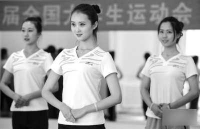 日前,第九届全国大学生运动会礼仪志愿者培训在天津航空培训基地举行。参照航空乘务员培训标准,首批50名大学生礼仪志愿者在专业礼仪培训师指导下进行社交礼仪、礼仪仪态和芭蕾舞基础等项目的训练。