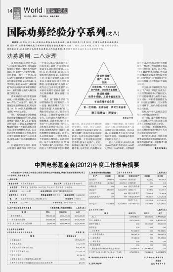 中国电影基金会(2012)年度工作报告摘要