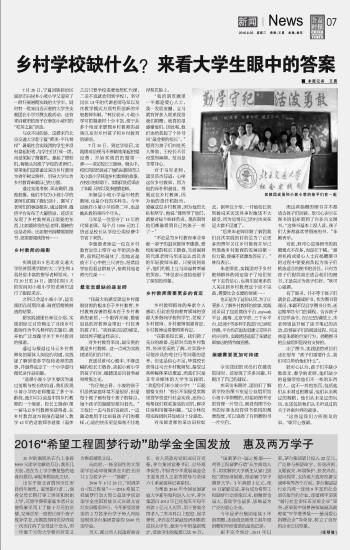2016“希望工程圆梦行动”助学金全国发放 惠及两万学子