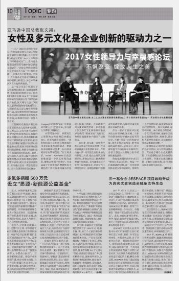 “三八”国际劳动妇女节前夕,在亚马逊中国与北京大学国家发展研究院(简称:北大国发院)联合发起的“2017女性领导力与幸福感论坛”上,亚马逊全球副总裁暨亚马逊中国总裁张文翊表示:“支持女性职业发展对企业而言不只是一件‘政治正确’、不得不为之的事情,事实上,女性及多元文化可以激发企业的创新力和活力,为企业带来实实在在的经济效益。” 这一观点引发了现场关于女性如何自我认识、挖掘自身优势、实现成长的热烈讨论。作为《财富》中文版2016年“中国最具影响力的商界女性”榜单的两位入选者,张文翊与北京大学国家发展研究院陈春花教授同台,与国家首批认证心理咨询师张捷一起,为职场女性的自我发展和成长支招,鼓励职场女性要不惧改变,在挑战中成长,绽放人生之美。 互联网时代兼容并蓄的特点更需要多元文化和多元思维。张文翊认为,女性与多元文化可以带来新鲜的视角以及独特的解决问题的方式,更易挖掘和满足客户群体的多元化需求,有益于企业不断打破固有的思维,推陈出新;女性更善于倾听并在团队间搭建桥梁,有助于构建积极学习和创新的团队氛围。此外,女性的加入还可以提升团队的集体智慧,从而更好地推动团队的整体表现,提升企业的经济效益,亚马逊正是这一理念的受益者。近日在美国商业杂志《Fast Company》评选的“2017全球最具创新力公司”榜单中,亚马逊力压群雄、荣膺榜首。 在亚马逊中国,经理及以上级别的女性比例已经超过50%,居亚马逊全球首位。“我们相信多元文化可以帮助我们寻求和思考不同的观点,更精准地洞悉客户需求,从而做出更好的决策和创新。”张文翊表示。Kindle Paperwhite白色款的推出是一个从女性视角出发,服务女性用户的例子。它也是基于中国女性消费群体对于颜色的个性化需求而量身打造的中国本土创新,之后被推广到全球更多的市场。亚马逊的女性及多元文化帮助亚马逊更好地践行“顾客至尚”的原则,为更好地服务客户提供了强劲助力。 多年来,亚马逊一直致力于推动女性员工的职业发展,在内部构建多元化的团队文化。在亚马逊中国,每年都会发起多场女性领导力对话,推出女性职业导师计划,帮助女性员工解决职业发展中的困惑。亚马逊还设立了女性工程师委员会,关注女性工程师的成长,定期追踪她们的职业发展满意度,为她们共享全球职业发展的机会。 作为一名由工程师成长起来的女性领导者,张文翊二十多年的职场经历曾屡次尝试不同岗位,不断“归零”之后再度突破,成为女性不惧改变,勇于挑战的最好例证。在论坛上,张文翊还基于自身的职业发展经历,分享了塑造女性领导力和幸福感的黄金法则。 陈春花教授在演讲中表示:“领导力不是天生的,而是一个自我造就的过程,这一点无论对男性还是女性都是如此。要成为一个好的领导者,最重要的是学会沉淀和独处,真正地思考、学习和判断,并付诸努力和行动。一个真正的领导者,能够在实现自我发展的同时,将使命、愿景和人紧密相关起来,这也是他们成功最重要的因素。” 张捷则从心理学的角度进行分析并指出,对女性和男性而言,无论处于哪个生命发展阶段,首先需要确立自身价值观和人生愿景,并逐步实现自我觉察,了解自己的优势,这样才能实现丰盛的生活状态。 (管乐欣) |