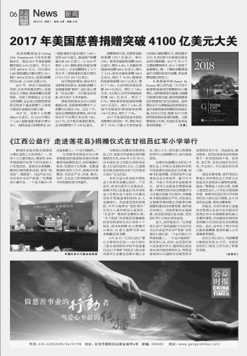 2017年美国慈善捐赠突破4100亿美元大关