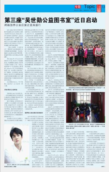 近日,EXO成员吴世勋中国粉丝发起的2019吴世勋公益图书室项目正式启动,将建立第三座“吴世勋公益图书室”,这是吴世勋粉丝连续第三年援建“吴世勋公益图书室”。该项目主要借助社交平台进行募捐,通过粉丝团的号召在吴世勋4月生日之际凝聚力量传递正能量。 “爱心无国界,公益在身边”。现阶段公益应援是粉丝支持偶像时备受青睐的一类活动,随着公益应援文化的不断发展,跨越国界的公益应援也正逐渐盛行。 早在2016年4月12日吴世勋的生日之际,粉丝为了给偶像惊喜,传递偶像正能量,在青海为贫困儿童建立了第一座爱心图书馆——“吴世勋爱心图书馆”;2018年4月,以吴世勋命名的第二座“吴世勋公益图书室”在广州落成。吴世勋爱心图书馆建成后,粉丝们会长期发起对爱心图书馆的图书捐赠,旨在为需要帮助的孩子们提供更多更好的学习机会。 吴世勋粉丝表示,“世予勋情,以爱为礼”,让书成为一种力量。 吴世勋的公益事迹 吴世勋自2012年出道以来,一直积极踊跃地参与各项慈善公益活动,积极履行和承担力所能及的社会责任和义务。 据公开报道,吴世勋曾在社交网络上为天津爆炸、四川地震祈福,在他的号召下,更多的海内外粉丝也开始关注灾情给予灾区帮助。他还参加冰桶挑战关注渐冻症,参与“星星快行动”关注自闭儿童,参与联合国发起的号召帮助尼泊尔大地震遭遇灾难的孩子们…… 吴世勋不仅在社交网络上通过自己的影响力传播正能量,同时他也会在繁忙的工作中抽出时间去儿童福利院坚持做义工,2018年5月,他曾低调现身儿童福利机构“善德院”陪伴孩子,并送去孩子们喜欢的食物,陪孩子们玩游戏做运动。“这不是吴世勋第一次来拜访我们。他只要有时间就会来和孩子们一起玩耍。孩子们都很期待他的到来,而且他甚至会在我们找他之前主动提供帮助。”一位福利院的工作人员表示。早在2017年年初,吴世勋就向常去的儿童福祉育儿中心及福利财团煤炭银行捐赠了煤炭2万块,其粉丝也积极跟随偶像的脚步,不仅向福利财团煤炭银行捐赠了善款,还以吴世勋的名义向白血病儿童财团捐赠善款,希望能给孩子们带去帮助。 除了自己身体力行做公益外,吴世勋还通过明星的号召力影响粉丝关注公益传播正能量,他曾公开对粉丝表示,不会再接受粉丝的生日礼物,希望粉丝们把这份爱分享给更多需要帮助的人。生日是一个人的庆祝,他希望粉丝将小爱化成对更多人的大爱,汇聚成更强大的力量为更多需要帮助的人带去帮助,向社会传递正能量。 吴世勋虽然是海外艺人,但一直以来非常喜欢中国文化,爱吃火锅,爱喝王老吉,爱吃膨化食品浪味仙,一直坚持自学中文,坚持自己更新微博,从刚出道时候的中文零基础到现在基本能和粉丝进行日常沟通交流。其代表作有电影《我爱喵星人》,影视剧《亲爱的阿基米德》、《独孤Rewind》,综艺《犯人就是你》等。 国界的公益应援正逐渐盛行 近年来以明星名义所开展的粉丝公益应援行为逐渐成为了一种新兴的有生命力的引导公众参与公益事业的重要方式,明星通过自身影响力带动粉丝参与公益,整体提升了公民参与公益的数量及途径。粉丝采取主动的姿态以明星之名发起公益行动,其规模已经超越以往个人参与单一公益事业的方式,成为当今明星公益的主流形式之一,成为助力公益发展的新力量。而随着公益应援文化的不断发展,跨越国界的公益应援也正逐渐盛行。 公益活动的形式从来不是单一的,多种多样的活动将公益融入了生活的方方面面。比如在由吴世勋粉丝站发起的米公益“我爱喵星人”活动中,多达48560人次持续参与捐赠15000公斤活动道具大米,以换取为流浪猫购买猫粮的资金;吴世勋中饭联合向联合国儿童基金会(UNICEF)捐赠1万元善款,帮助在尼泊尔地震中受伤的孩子们;雅安地震、天津爆炸等自然灾害中,吴世勋各地粉丝积极响应号召,联合捐赠了价值近万元的各类灾区急需医疗食品,送给灾区应急。 2015年,吴世勋中国粉丝联合在韩国首尔和印度分别通过Star Forest建造了“吴世勋森林”,为环保公益做出了贡献。 2016年,吴世勋粉丝在越南建造了一座希望桥,为越南贫困地区人民解决了出行困难的问题,为贫困地区人民的生活贡献粉丝们力所能及的微薄力量。该消息在粉丝们通过网络平台公开后,吴世勋在微博社交平台点赞了粉丝们做的公益,回复粉丝们做得“非常好”。 2016年,吴世勋23岁生日之际,吴世勋后援会在青海为需要帮助的孩子们更换新桌椅等硬件设施,添加电脑等多媒体新设备,结成吴世勋爱心学校。 2017年,吴世勋粉丝向定州市思语聋儿语言康复学校捐建一所“吴世勋爱心舞蹈教室”。 2018年,粉丝为了纪念吴世勋生日在中国西部地区沙漠中以他的名字捐赠了412棵树木,希望吴世勋和爱着吴世勋的所有人无论何时都能与郁郁葱葱的大自然相伴。 2018年,吴世勋粉丝在陕西省安康市紫阳县麻柳镇作坊小学修建了一条吴世勋路,从作坊小学一直到麻柳镇公路之间,总长5.5公里,宽1米,吴世勋路已经于去年修建完工。如今已投入使用,崎岖的山路变成了安全的水泥路。据反馈孩子们上学之路再也不用担心爬陡斜的山路所存在安全隐患,也不用担心雨雪天学生将无法准时上学。目前该条由吴世勋粉丝所建筑的路已得到了陕西省旅游局官方认证,吴世勋粉丝积极响应国家精准扶贫号召,帮助贫困地