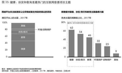 ■ 本报记者 张龙蛟 今年5月,贝恩公司与联合之路(United Way)共同发布了《中国互联网慈善:激发个人捐赠热情》报告(以下简称“报告”)。报告显示,中国慈善事业规模达到1560亿元,并保持快速增长。 互联网捐赠金额在中国社会捐赠总金额中的占比略高于2%,但增长迅速、特征明显,主要由年轻一代驱动。报告建议,为把握机遇,慈善事业各方参与者应制定全面的数字化战略,包括客户和渠道参与、产品和服务、运营、数据和分析、运营模式与合作、人才和文化等。 国内慈善事业增长潜力大 在社会捐赠总量增长潜力方面,报告提出,中国慈善行业历经30多年风风雨雨,由于重大自然灾害和负面事件,2007年至2011年间筹款情况曾出现大幅波动。但随着透明度的提升和政府加大监管,目前整个行业已进入稳定增长阶段。 具体来讲,报告显示,由于重大自然灾害和负面事件,2007年至2011年,国内社会捐赠总量曾出现大幅波动情况,捐赠总量在310亿元与1070亿元间浮动。 2011年至2016年,社会捐赠总量进入调整和稳定发展时期,捐赠总量逐年递增,从最初的850亿元逐渐增长至1460亿元。 2016年至2017年,由于《慈善法》的实施以及相关监管的加强,社会捐赠总量进一步增长,至2017年,已增长至1560亿元。 从社会捐赠总量占GDP比重角度分析,报告以2016年社会捐赠总量占GDP比重的数据进行了对比说明。2016年,中国社会捐赠总量仅占GDP的0.2%。而这一数字,在日本、印度、澳大利亚和美国则分别是0.3%、1.4%、1.8%、2.1%。 报告认为,当下慈善事业在中国迅速崛起,但并未跟上整体经济的增长步伐。尽管目前社会捐赠总量仅占中国GDP极小比例,但未来仍有增长的潜力。 在个人捐赠方面,报告对比了2011年至2016年国内社会捐赠总量和来源以及2016年中美两国社会捐赠总量和来源等数据。 数据表明,2011年至2016年,企业捐赠一直是国内捐赠资金的主要来源,占比在57%与71%间浮动,个人捐赠在国内社会捐赠总量中占比相对较低,在11%至32%间浮动,但2014年至2016年,个人捐赠占比呈现持续增长的态势。 2016年中美两国社会捐赠总量和来源的数据对比显示,中国的个人捐赠在社会捐赠总量中占比仅21%,远低于美国的72%。据此,报告认为,参考美国慈善市场的情况,中国的个人捐赠预计将还有很大的增长空间。 此外,报告还分析了中国、美国、英国、德国等多个国家的慈善捐赠者渗透率情况,通过分析,报告认为,中国国内个人捐赠者的渗透率相对较低,仅占总人口的7%,但随着年轻一代逐渐接受通过慈善公益回馈社会的理念,参与率将保持快速增长。 从居民可支配收入与国内网民的发展规模角度分析,报告分析了2000年至2030年间,不同可支配收入的中国家庭占比情况。 数据显示,30年间,拥有500至2500及2500至1万的中国家庭数量占比逐渐减小,而拥有1万至6.5万、6.5万至10万以及10万以上的中国家庭数量占比逐渐增大。报告认为,中国收入水平的提高将拉动慈善捐赠,提高公众参与度。 在网民规模方面,报告显示,2010年至2017年,中国网民规模从4.58亿持续增长至7.72亿,互联网渗透率也逐年递增,从34%增长至56%。报告指出,中国网民基数庞大,将为慈善事业带来巨大的发展机会。 通过以上角度,报告分析了目前中国慈善行业发展过程中的潜力与机遇。但通过分析2017年世界慈善捐赠指数和2016年中国公益组织从业人员薪酬情况,报告也指出,中国慈善事业发展迅速,但慈善文化仍在早期阶段,当下慈善行业的发展仍需应对一系列挑战,包括获得和维护公众信任,提高运营效率和制定透明的报告标准,以及招募和挽留优质人才。 互联网慈善特征明显 通过梳理,报告指出,以互联网为代表的数字化技术正在快速改变中国慈善行业的运作方式,为利益相关者建立新的联系,缩小捐赠者与具体慈善项目之间的距离。以慈善捐赠资金筹集环节为例,除了传统的线下筹款方式,报告还分析了具备公募资格的慈善组织的线上自有渠道、具备在线募款资格的互联网平台以及新的互联网平台和渠道等三种线上筹款形式。 通过分析2013年至2017年互联网募捐金额变化情况、2017年社会捐赠总量中互联网筹款在各类捐赠来源中的占比、2017年国内常见互联网筹款平台的网络捐赠人次和平均捐赠金额等数据,报告指出,互联网筹款金额和参与度在逐渐攀升。在各类捐赠来源中,互联网筹款都有很大的增长空间。目前互联网筹款平均捐赠额较低,来自个人捐赠的网络筹款仍有较大增长潜力。 而通过研究2013年至2017年互联网捐赠者在腾讯、阿里巴巴等不同网络平台的占比情况、2017年不同互联网平台的日活跃用户和平台捐赠金额等数据,报告指出,目前慈善市场格局呈高度集中化状态,20个网络平台获得执照,能够帮助个人捐赠者直接为慈善项目捐款,但目前总捐赠额的90%仍来自腾讯和阿里巴巴,少数主要筹款项目占据了互联网捐赠资金的大头。 报告认为,目前中国互联网慈善事业具有几个重要特征。 首先,中国年轻一代对公益表现出强烈兴趣,是互联网筹款的主体,吸引年轻捐赠者将是所有利益相关者必须赢得的重要战役。为此,报告分析了2013年与2016年互联网捐赠者的年龄占比,分析发现,关注公益的人群中30岁以下占比63%,参与慈善活动的人群中30岁以下占比52%。 其次,目前大多数平台欢迎并鼓励各类非政府组织和个人在线筹款,但仅有一小部分项目成功获得了大多数捐款额。