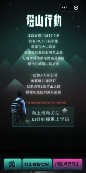 ■ 本报记者 皮磊 江西遂川县是国家级贫困县、劳务输出大县,当地留守儿童众多。由于地处山区,很多孩子上学放学不得不摸黑走山路,如果遇上雨天等恶劣天气,山路就变得更加险阻难行。据不完全统计,在遂川县17个乡有20789名学生住在大山深处,而在这两万多名孩子的山路上,陪伴他们的通常只有手电筒发出的微弱光亮。 为了让这些孩子能够安全上学、回家,2018年2月,一项名为‘照亮留守儿童那盏灯’的公益项目上线,募集资金在当地修建太阳能路灯,目标金额635万元。 但半年多过去,项目只筹得六七万元。 一筹莫展之际,一个大胆的尝试给这个项目带来了翻天覆地的变化——两天之内即筹得30万元。 【“他们上线了一个游戏”】 为公益项目开发游戏,不是所有公益机构都能作出的决定,除了执行成本外,可能还需要对的“时机”。 而“照亮留守儿童那盏灯”项目遇上了对的“时机”。 项目发起方之一——中国志愿服务基金会相关负责人告诉记者,在腾讯第二届“我是创益人”大赛要立项的时候,经腾讯方面牵线搭桥,基金会方面接触到了华扬联众广州分公司参赛团队,该团队对“照亮留守儿童那盏灯”项目特别感兴趣,同时也十分关心贫困山区儿童上学问题。 “大家都赞同以游戏的方式,比如设置一些简单的关卡,将山区儿童摸黑上学的问题展现出来,同时要减少悲情元素,提升用户感知,让公众捐赠变得轻松化,提高捐赠的可重复性。”上述负责人谈道。 在多次沟通与调研的基础上,华扬联众团队以游戏作为主要创意载体,对山区孩子摸黑上学的场景进行了还原,让玩家通过简单有趣的方式了解山里孩子上学途中遇到的种种困难。游戏界面中许多障碍性设置都源于真实生活场景:比如,“洞”代表悬崖;“石头”代表可能砸到孩子的落石;随时出没的“猛兽”和逐渐变暗的手电筒等,都代表着孩子们上学途中可能遇到的困难。 据介绍,为了让游戏创意能够顺利落地同时让该项目得到更多关注,“我是创益人”大赛携手腾讯各团队,对游戏开发及流程优化等给予了全程保障和技术支持。 2018年11月17日,命名为《灯山行动》的游戏一经投放便得到大量关注,这是首款公益主题的微信小游戏,马化腾也发了一条朋友圈表示支持。 投放仅两天时间,这款公益小游戏共获得超84万次访问,得到12500次分享,超过两万人捐款,捐款额高达30万元。而该游戏在腾讯广告各平台投放期间,三天体验人数超128万人次,获得捐款超过134.7万元,可帮助22.5个偏远村落安装路灯。 截至目前,“照亮留守儿童那盏灯”公益项目获得11万余人次捐赠,筹款额超过220万元。项目也得到了一些企业关注,希望联合起来共同推动该项目落地。中国志愿服务基金会方面表示,取得这样的成果主要是得益于《灯山行动》公益小游戏的拉动,“游戏上线后,我们的筹款一直在以比较快的速度增长”。 今年1月23日,在“我是创益人”2018公益广告大赛颁奖典礼上,《灯山行动》获得“创益大咖组金奖”。 【或可覆盖更多社会议题】 有分析称,基于小程序这种无需下载又随时可用的应用,类似《灯山行动》这样的公益小游戏实现了轻量化的友好使用体验。而游戏排行榜的设置及角色代入式的体验,也能引发玩家之间的分享和传播,使得这种小游戏能够得到主动的、几何倍数的推广。 与大屏广告、H5及线下推广等传统传播手段相比,公益小游戏正逐渐成为一种能够随时随地吸引更多人参与公益、感受公益的有效形式,启发公众对于公益价值的深度认知和思考。更重要的是,游戏这种轻松的方式能够以一种相对较低的成本覆盖不同社会议题。 今年7月1日,由财政部定点扶贫办联合微信发起、广州乐玩研发的微信小游戏《欢乐农场主》正式上线。作为国家精准扶贫战略合作定制产品,《欢乐农场主》不仅是一款“偷菜”类型的农场经营养成类游戏,其还与“筑爱扶贫馆”电商小程序打通,玩家在玩游戏的过程中可通过购买扶贫产品的形式参与到扶贫项目中。 记者在体验游戏的过程中发现,《欢乐农场主》剧情设置相对简单,风格也较为卡通。玩家以刚毕业的大学生身份响应国家扶贫号召下乡,在湖南省平江县开启农场经营之旅。玩家可收获农产品并充实仓库储量,销售指定农产品获得金币奖励,进行土地升级提高效益,雇佣专家投入科研等。在游戏过程中,玩家可以完整地体验农产品种植、收割到售卖等过程,了解农民耕种的不易。 游戏以湖南平江为背景,但并不限于这一个地方,玩家完成分享任务后还能解锁云南永胜县、汾西县等扶贫地区的游戏地图。在游戏中,玩家可以把自己的积分兑换成贫困县经济作物的优惠券,用“以购代捐”的方式参与到扶贫项目中。同时,电商平台大转盘抽奖和限时售卖等活动也能刺激玩家分享,带动玩家的购买欲望,以一种较为直接的方式帮助扶贫地区销售滞销的农产品。 对于不擅长玩游戏的人来说,这款游戏的教程也比较详细,对每一步操作几乎都会做出说明。此外,通过观看广告玩家还可以获得更多游戏奖励。而由广告和电商带来的收入也将投入扶贫工作中。 记者也注意到一个细节,游戏中观看广告并非强制选项,而是可以关闭,游戏界面也会出现类似“看个广告也是一种扶贫支持”的提示语,尊重玩家的自主选择。 不难发现,这款公益小游戏其实是将扶贫话题植入到了游戏中,