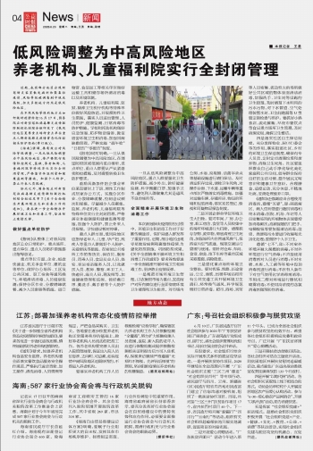 低风险调整为中高风险地区养老机构、儿童福利院实行全封闭管理
