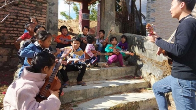 直播镜头前,12岁的文忠林有些紧张,他低着头认真准确地拨动着尤克里里的琴弦,带着6个同学唱起傈僳族的《好友歌》。唱着唱着,文忠林和同学们都松弛了下来,脸上开始绽放出灿烂的笑容。 这一天是5月31日,云南省怒江傈僳族自治州泸水市洛本卓乡子竹村成墙坝完小和云南普洱市孟连县芒信镇拉嘎村完小的几十名孩子,一起参加了抖音上的“六一困境儿童公益演唱会——童谣时光机”。 这场4个多小时的线上音乐会,孩子们轮流奔跑着出去吃饭,再跑回来挤在手机前,唯恐错过精彩的画面。他们轮番到镜头前唱民族歌曲,还把自己拍摄的小视频放给大家看。 这是云南连心社区照顾服务中心(以下简称“云南连心”)专门为今年“六一”儿童节策划的活动:携手中华少年儿童慈善救助基金会、抖音,用云上音乐会的形式,为云南山区留守儿童和困境儿童送上特别的儿童节礼物。 音乐陪伴计划是云南连心2019年推出的一项让留守儿童和困境儿童学习弹奏尤克里里的公益项目。 “尤克里里(Ukulele)在夏威夷语中的意思是‘到来的礼物’。”云南大学社会工作研究所研究助理、云南连心社区照顾服务中心主任兰树记说,“我们希望把它作为礼物带给那些没有父母陪伴的留守儿童和困境儿童,让他们通过音乐的陪伴寻找到快乐,并从音乐中获得力量。” 音乐除了陪伴 作为专门服务弱势群体的民办社会工作服务机构,云南连心曾多年将办公室设在昆明王家桥社区里。这个社区里的居民,一半以上都是外来务工的流动人口,这些家庭面临着不同的问题:辍学、单亲、残疾、收入不稳定、家庭暴力、孩子独自生活无人照顾等。 多年来,云南连心尽一切努力,为社区的困境儿童提供一个“类家庭”的环境:让他们像一家人一样,一起做饭、吃饭、洗碗、做作业、听音乐、看电影、外出集体旅行等。并以一对一的陪伴服务和朋辈支持的小组工作模式,对需要救助的儿童进行家庭陪伴。 在家庭陪伴计划中,他们采用音乐治疗的方式来救助和治疗被家暴的妇女、目睹了家暴的儿童。音乐小组使用的乐器是尤克里里。尤克里里这种类似小型吉他的乐器,小巧,入门快,只要几个课时就能学会。 促成云南连心将音乐陪伴计划作为一个公益产品项目化来运作的,是一名叫冬冬(化名)的女孩。 6年前,冬冬跟随父母从家乡云南昭通市鲁甸县火德红镇来昆明打工,他们就住在昆明城郊的王家桥社区。冬冬是尤克里里学习小组的一员。 2014年8月6日,鲁甸县发生里氏6.5级地震。震后不久,云南连心的社工们赶往鲁甸参与救灾。在灾区医院,他们发现了受伤的冬冬。原来,冬冬半年前和家人回到火德红镇读初中,地震中死里逃生的她,把弟弟、妹妹从废墟里刨出来,尽管一家人都幸存下来,但其他亲人的去世和地震的惊吓,使冬冬出现沟通障碍,一直不开口与人交流,直到后来云南连心社工的到来。社工们给她买来尤克里里,鼓励她继续弹琴。冬冬轻轻拨动琴弦,医院里响起了悠扬的乐声。 “这把尤克里里在医院和帐篷区一直都陪伴着她。”曾经参与灾后救援的社工张耀炜说,尤克里里不仅让冬冬逐渐恢复过来,也因为她的弹奏,影响了身边的孩子,帐篷区渐渐有了歌声和笑声。 2019年,云南连心正式推出音乐陪伴计划公益项目。在兰树记看来,音乐除了有陪伴的作用外,还有一种聚合力。 “艺术是一种群体性活动,需要很多人在一起,要么大家一起玩,要么一些人演一些人看。在社会工作里面,就叫团体动力,体现出互助的功能。”兰树记说,作为一种团体治疗,音乐会产生正向的相互感染作用。青少年聚集在一起学习,相互陪伴相互支持,情绪得到宣泄,才艺得以呈现,自我得到鼓励。 同时,他认为,少数民族地区的孩子本来就能歌善舞,他们弹奏和演唱本民族民歌,能让他们产生对本民族文化的自信,从而产生传承和保护民族文化的内在动力。 在音乐中寻找 创造与坚强的力量 在昆明财盛巷,刘瀚毓的有棵树乐器店显得十分不起眼,小小的店面墙上,挂满了型号样式不同的尤克里里。 刘瀚毓是音乐陪伴计划公益项目的发起者和志愿者之一。“我也是音乐的受益者。”刘瀚毓从小自闭,没什么朋友,直到14岁接触了音乐才开始试着去和别人交流,并从此爱上音乐。2010年,28岁的他辞去工作,开始专门从事尤克里里教学,曾担任过“云南青少年才艺推选赛”尤克里里评委和指导老师,并荣获全国尤克里里优秀教师称号。 2011年,刘瀚毓通过网络找到了和他一样热爱尤克里里的网友何一博、甜心、张源恒。他们成立了有棵树工作室,成为昆明最早推广和培训尤克里里的团队。 多年来,有棵树逐渐成为昆明尤克里里爱好者的聚集地。他们的学生最小的4岁,最大的70余岁。他们组织尤克里里快闪、刘宗立“尤克里里环球之旅”昆明站、琴友聚会、草地音乐会、嗨皮集市等。在他们看来,选择尤克里里,就是选择一种“充满阳光、希望、欢乐的生活方式”,“轻松愉悦的弹奏给生活带来海岛般的乐观、活力和开朗”。 自从音乐陪伴计划公益项目推出以来,有棵树成为主要的志愿服务队。很多志愿者在有棵树的带领下参与到音乐陪伴计划当中,每周日到王家桥社区教孩子们学习尤克里里;还分别前往怒江、普洱、临沧等地,为当地的教师和孩子提供义务教学。他们发现,无论在哪里,孩子们都对这件小小的乐器充满了好奇和兴奋。 20