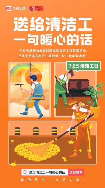 每天,在世界酣睡的凌晨,有一群橘黄色的身影,用布满老茧的双手挥舞着扫把,穿梭在大街小巷;在炎炎烈日的正午后,有一群在高楼大厦进行悬空作业的“蜘蛛侠”,随时面临坠落风险却依旧坚挺在工作岗位上;在城市最不起眼的地方,有一群可爱可亲的阿姨,为美观和整齐日日夜夜不辞辛劳…… 他们是城市最重要的组成部分——清洁工。他们不是风景,却是城市的守护者。他们用自己的双手,为城市变得更加美丽尽心尽力。 7月23日是这群“与众不同”的劳动者的节日——清洁工日。《公益时报》联合今日头条发起#送给清洁工一句暖心的话#主题活动,,也号召大家从自我做起,主动参与到环境清洁中,为美丽城市共同努力。 在这个属于城市劳动者的节日里,许多用户都发文响应活动,用自己的话语表达他们对“城市美容师”的敬意。 职业只是分工不同,平凡生活亦有光芒!共建美丽城市不仅是清洁工的责任,更是你我携手共进之使命!致敬每位清洁工!致敬每位在平凡生活中闪耀的劳动者!你的故事,也是头条! (于俊如) |