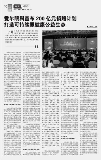 爱尔眼科宣布200亿元捐赠计划 打造可持续眼健康公益生态