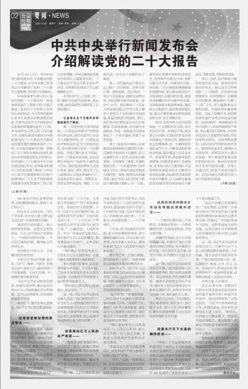中共中央举行新闻发布会介绍解读党的二十大报告