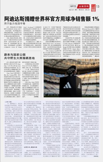 阿迪达斯捐赠世界杯官方用球净销售额1%