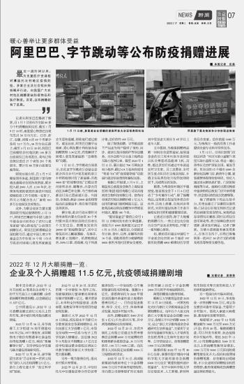 2022年12月大额捐赠一览:企业及个人捐赠超11.5亿元,抗疫领域捐赠剧增