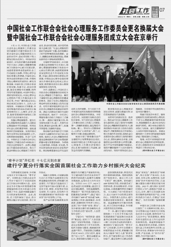 中国社会工作联合会社会心理服务工作委员会更名换届大会暨中国社会工作联合会社会心理服务团成立大会在京举行