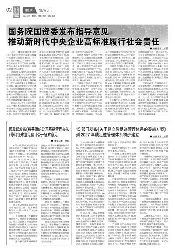 国务院国资委发布指导意见推动新时代中央企业高标准履行社会责任