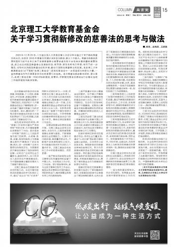 北京理工大学教育基金会关于学习贯彻新修改的慈善法的思考与做法