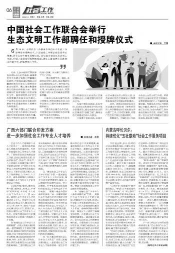 中国社会工作联合会举行生态文明工作部聘任和授牌仪式