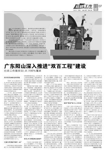 广东阳山深入推进“双百工程”建设 社会工作服务站(点)100%覆盖