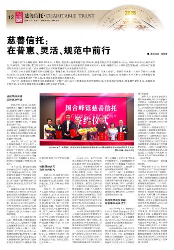 ■ 本报记者 张明敏 “慈善中国”平台数据显示,截至2024年12月底,我国累计备案慈善信托2205单,慈善信托财产总规模超84亿元。2024年以来,已有平安信托、华润信托、中航信托、厦门国际信托、山东国信等多家信托公司在慈善信托领域有所行动。此外,随着信托三分类新规的落地,进一步明确了慈善信托的本源业务定位,进一步加强对信托公司开展慈善信托业务的鼓励与引导。 信托行业从业者将慈善信托的优势概括为“量身定制、设立简便、管理灵活、运营成本低、可永久存续”。根据信托法第十九条对于委托人的规定,委托人应当是具有完全民事行为能力的自然人、法人或者依法成立的其他组织。这意味着,企业、慈善组织、社会团体和个人都可以将慈善信托作为参与公益慈善事业的一种工具,根据自己的意愿设立慈善信托。 2024年,慈善组织开展慈善信托的意愿进一步提升,信托公司与慈善组织的合作继续深化,信托额度大幅增加,慈善目的更加多元,慈善模式不断创新,多方共促慈善信托高质量发展的生态逐步形成。 规模不断突破优势更加明显 新修改的《中华人民共和国慈善法》第四十四条明确提出,慈善信托属于公益信托,是指委托人基于慈善目的,依法将其财产委托给受托人,由受托人按照委托人意愿以受托人名义进行管理和处分,开展慈善活动的行为。 慈善信托具有资产隔离、保值增值、践行慈善目的等功能优势,能够实现长期稳定发展,这也大大激发了慈善信托规模和数量的不断突破。 2024年11月27日,由江苏永钢集团有限公司作为委托人出资1亿元,在北京市民政局备案设立“中诚2024农银壹私行永卓控股永联村乡村振兴慈善信托”,受托机构为中诚信托有限责任公司,慈善目的是助力永联村社区慈善事业发展和乡村振兴。 12月23日,长安国际信托股份有限公司作为受托人接受1亿元“思德慈善信托”业务,该笔慈善信托备案于西安高新区社会事业服务局,备案期限无固定,用于有序开展“帮扶助学、助医助学、养老救孤、防灾救灾”等业务…… 慈善信托在缩小财富鸿沟、发挥第三次分配作用,助力共同富裕方面具有多重独特优势,在信托行业不断转型深化的阶段,行业格局或将迎来新的分化调整。自2023年3月信托业务“三分类”新规颁布,在信托业内,慈善信托的定位已被提升至与资产管理信托和资产服务信托同等的高度。 业内人士表示,慈善信托是区别于慈善捐赠、开展慈善活动的手段和方式,在慈善资产处置上拥有更多的优势,如,慈善信托将现代金融方式融入社会制度创新,可广泛吸纳、运作社会捐赠的巨额财富,并按委托人意愿将投资收益用于公益事业,为大额慈善捐赠、遗产捐赠以及众多类型丰富的财产捐赠难以落地等问题提供了较好的解决路径。 信托目的多元拓展空间巨大 纵观2024年,慈善信托设立目的愈发多元,且不再拘泥于困难群体的帮扶、救助层面,而是向着文化、艺术、体育、ESG等领域发力。 2024年4月,由周凤玲(个人)、深圳市社会公益基金会作为双委托人,出资20万元设立“光信善杨露禅太极拳传承发展慈善信托”。该慈善信托选择资助太极拳传承、推广、研究和发展公益项目,促进以太极拳为首的非物质文化遗产传承发展。同月,中航信托股份有限公司作为委托人,出资991万元设立“中航信托中华慈善总会文脉传承慈善信托”,致力开展传统文化典籍的修复、购买版权以及印制等。 尤其值得肯定的是,在需要长期投入的社会领域及公益议题下,以慈善信托形式进行投入,其可持续性更为显著,社会效果也更为突出。在社区层面,已有实践—— 2024年12月,由广州市海珠区慈善会作为委托人的“海珠区慈善会2024社区慈善信托”正式成立。该慈善信托规模50万元,信托资金用于资助和支持改善社区教育、科学、文化、卫生、体育、扶贫、济困等方面的慈善项目,资助和培育社区社会组织的建设和发展,资助和发展社区志愿服务、激发社区参与活力、改善社区公共服务设施,开展慈善宣传,传播“人人慈善为人人”的理念以及符合《慈善法》规定的其他公益慈善活动。该慈善信托采用双受托人架构,充分发挥了慈善信托的功能性与制度性优势,为社区发展注入了金融活力,实现了资源的跨区域整合与优化配置。 2024年,相关政策的不断出台完善为慈善信托发展带来了新的契机,还为慈善信托的业务模式创新提供了更多可能性。家族慈善信托、养老慈善信托以及绿色慈善信托等项目陆续落地,慈善信托方式得到更广泛运用。 2024年4月,由华润深国投信托游有限公司作为委托人出资50万元、汉正家族办公室(广州)有限公司作为监察人设立的“国合峰铄慈善信托”完成签约,成为全国首个关注长者权益保护的慈善信托。该笔慈善信托初步计划用于对患有膝关节疾病的困难长者的救助,以及支持长者法律服务的组织和项目。 业内人士指出,未来慈善信托仍有巨大的拓展空间,可以充分发挥“信托+慈善”的优势,吸引更多群体参与慈善事业,助力实现财富向善。同时,也可通过政策宣传引导和成功案例的示范效应,有效增进社会各界对慈善信托的了解和认同,从而更好地发挥信托的价值。 税收优惠逐步明晰规制体系基本建立 2024年9月5日,新修改的《中华人民共和国慈善法》正式施行,对于业内普遍关注的税收问题,其中第八十八条明确提出,“自