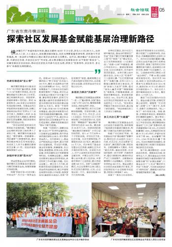 广东省东莞市横沥镇:探索社区发展基金赋能基层治理新路径