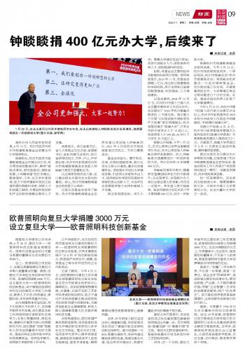 欧普照明向复旦大学捐赠3000万元设立复旦大学——欧普照明科技创新基金