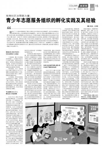 培育社区治理新力量:青少年志愿服务组织的孵化实践及其经验