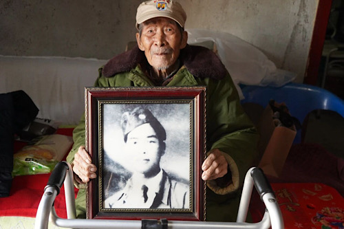 约1943年被抓壮丁入伍,服役于国民革命军第4军59师175团,任步兵,持“汉阳造”步枪在湖南郴州地区与日军多次交战,亲历阵地防御战。抗战胜利后归乡,务农至今。