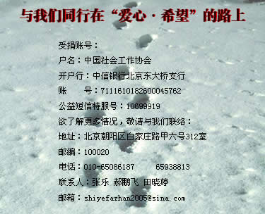 ◆ 2007年1月13日有中国社会工作协会和中央电视台共同主办并录制的《中华情·凝聚爱》大型公益晚会在cctv4频道分8次向全球播放;
