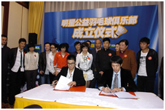 10月28日,囊括众多演艺明星的明星羽毛球队正式改名为公益明星羽毛球俱乐部,并在钓鱼台举行了隆重的成立仪式。明星羽毛球队自2003年成立以来,已发展到近百人的阵容。中国社会工作协会副会长、《公益时报》社社长刘京担任主席、刘晓庆担任执行主席。
