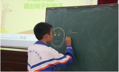(图为甘肃学生在课堂上画精子和卵子)