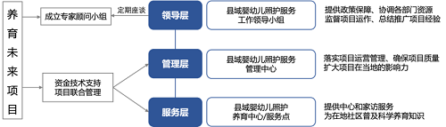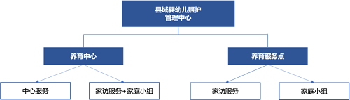 1. 项目管理架构:县政府成立领导小组,主管部门(卫健局)设置一个管理中心,下设养育中心或服务点。